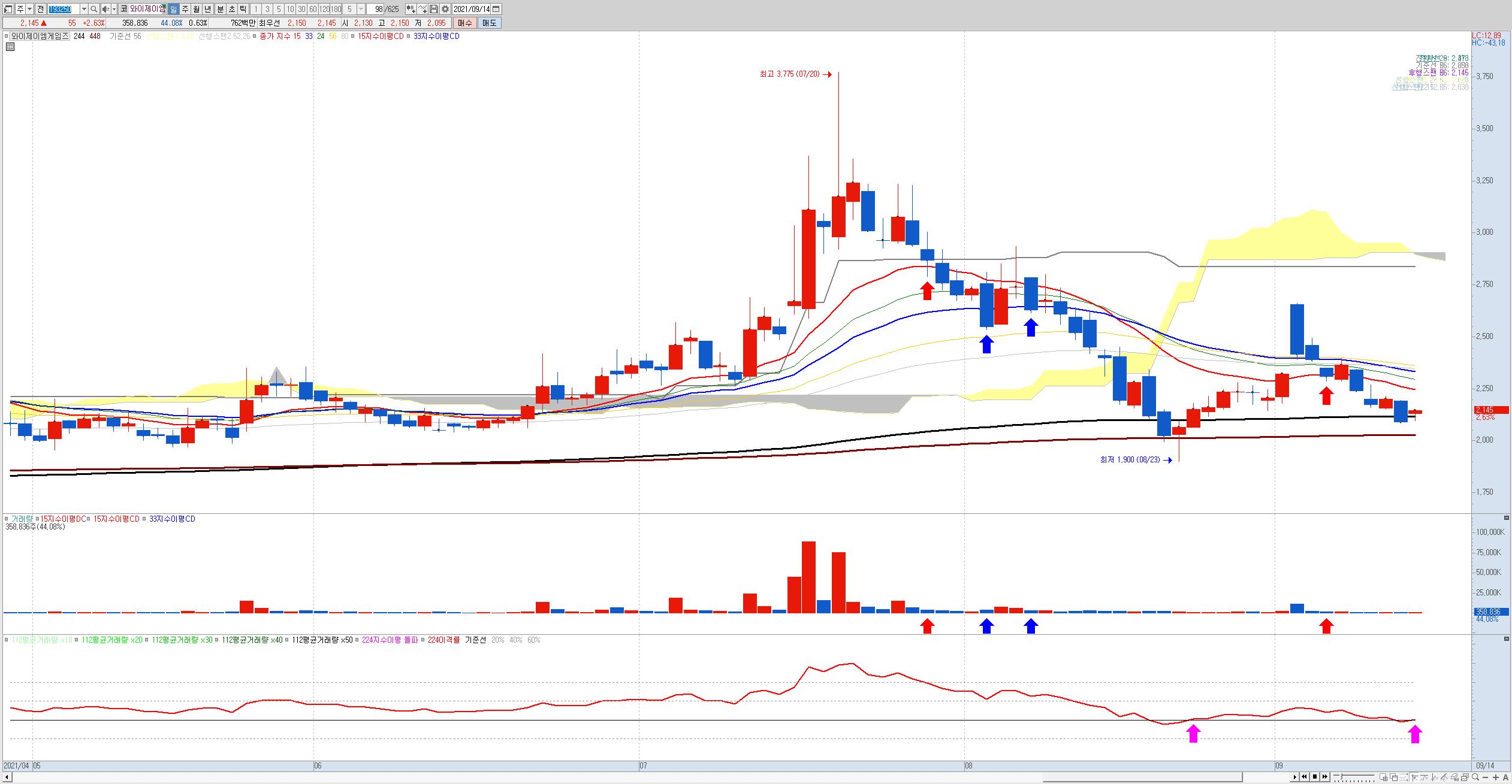 매수조건1 현재가가 15일 지수이평을 데드크로스