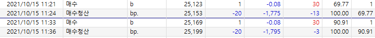 10시 30분 이후 거래는 익절 50틱으로 되어 있는데, 실제 거래에서는 30틱 수익으로 청산되었습니다.어디에 문제가 있는지 확인 부탁드립니다.