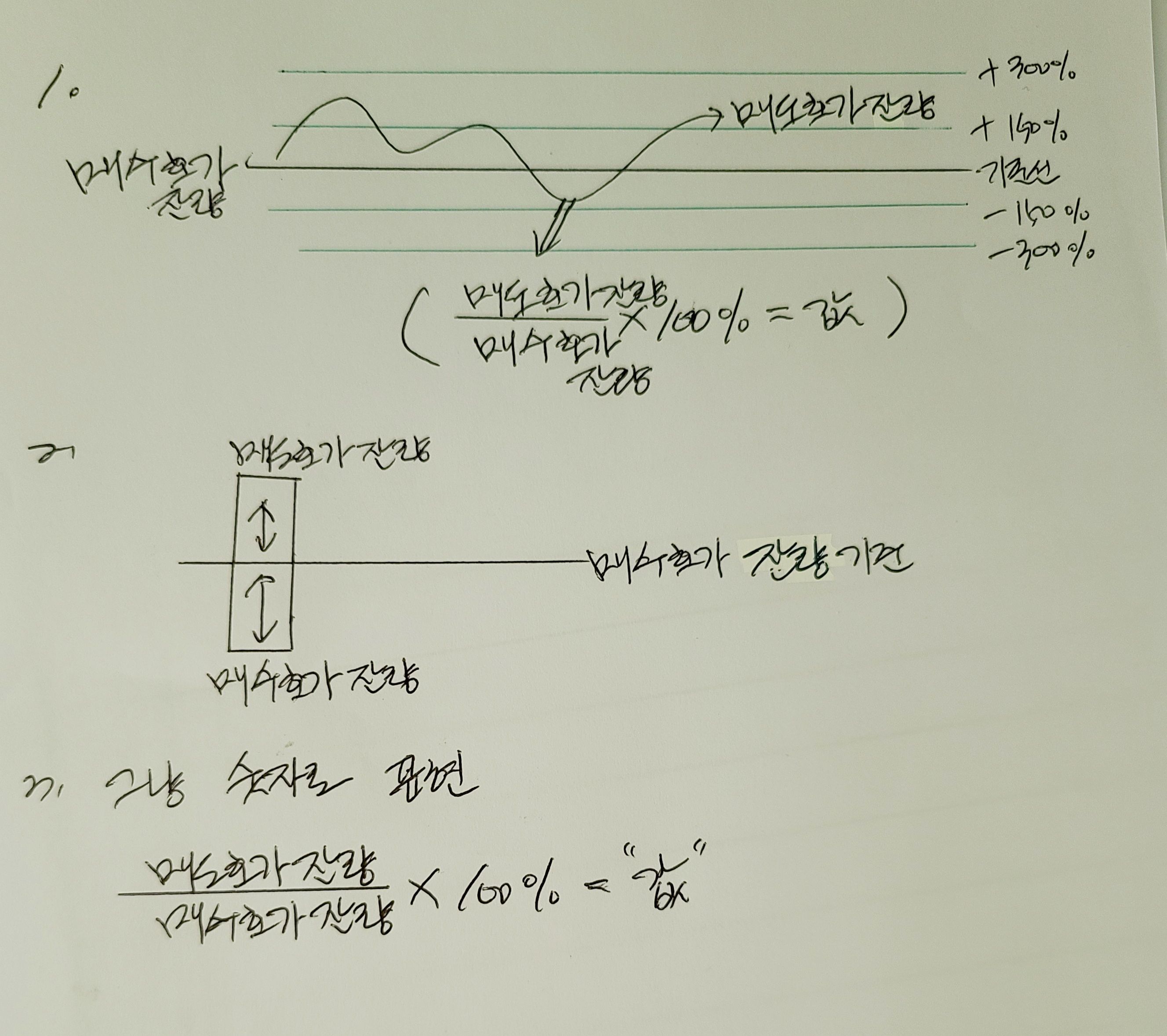 1.종목에서 (매도호가잔량 나누기 매수호가잔량)*100=값을 표현