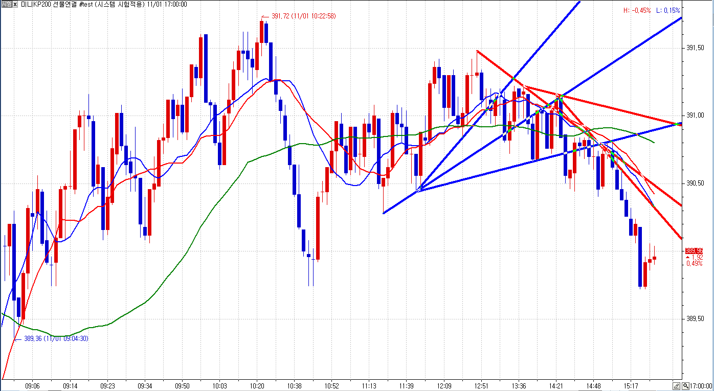 예를 들면 첨부파일의 맨 마지막봉의 종가는 389.96 이지만 가장 낮은 붉은 추세선의 값은 390.30 주변인데 각 봉의 위치마다 추세선의 값을 구하는게 가능한지 궁금합니다.