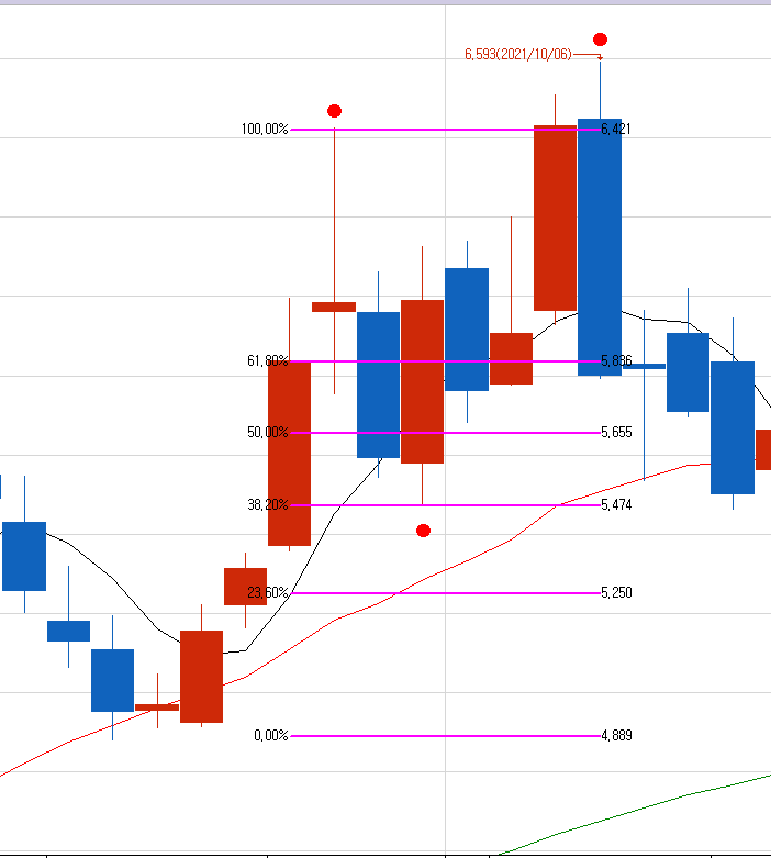 > 일봉 캔들 20개의 매수 38.20 % 청산 123.60 % 의 수식어와