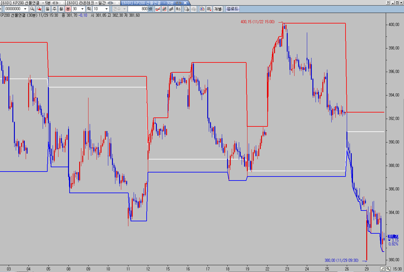 11월15일과 11월 22일에는 고가선이 첫번째 캔들에 적용이 안됩니다
