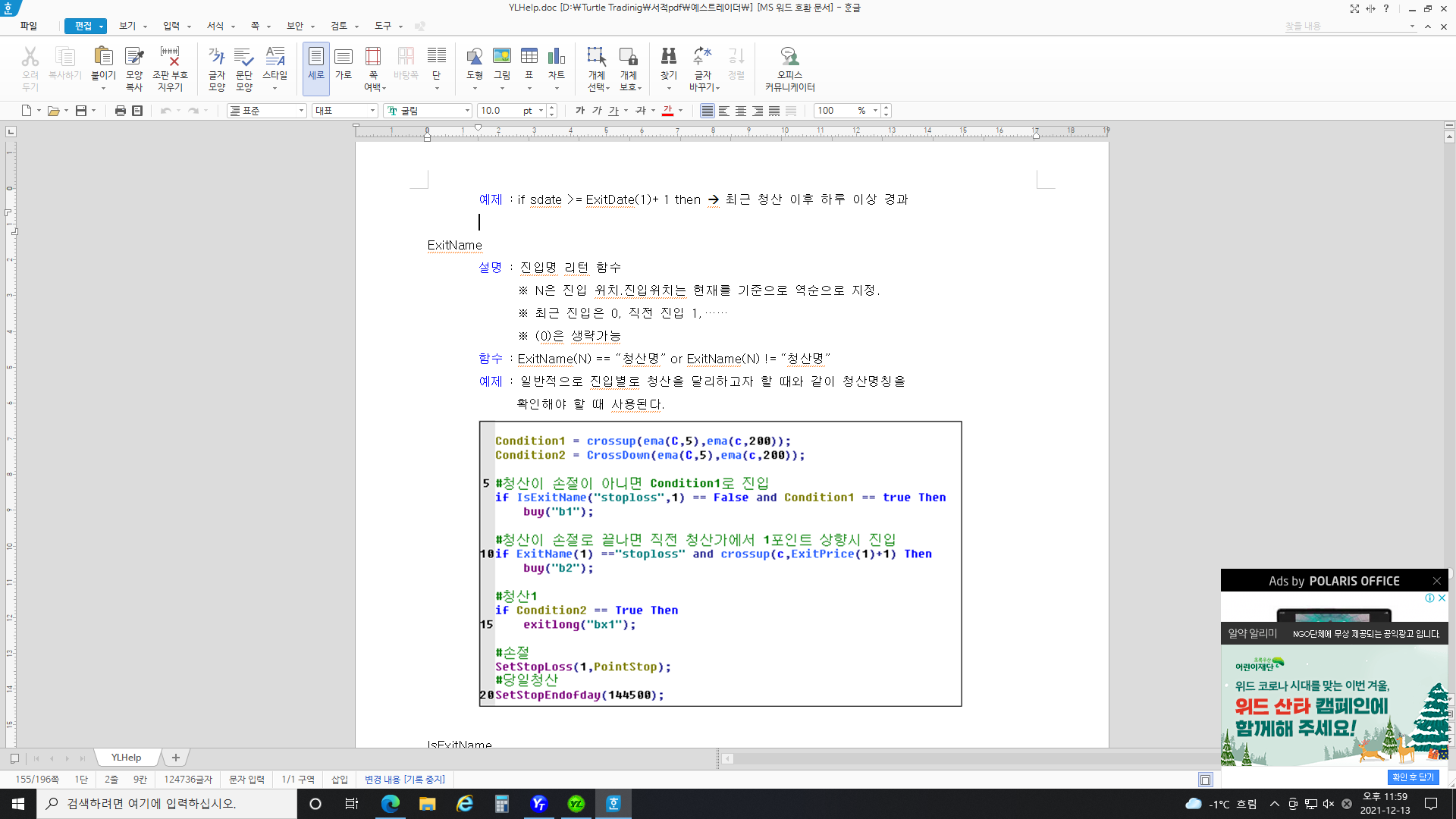 트레이딩의 청산명이 "EL' 인 경우 그 날은 더 이상 진입하지 않겠다는