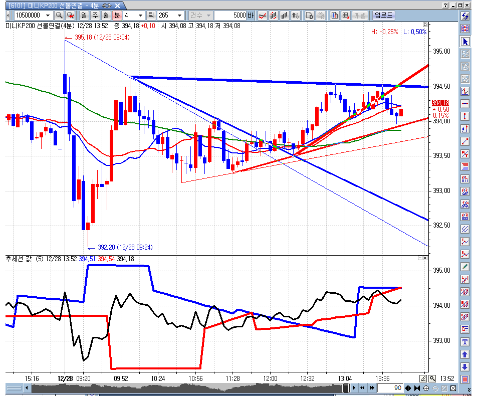 그 값은 들쑥날쑥하고 차트상의 추세선 값과 지표에서 그려지는 값도 다르게 나오는데