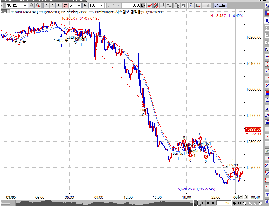 1분봉으로 선물 거래를 하고 있습니다.