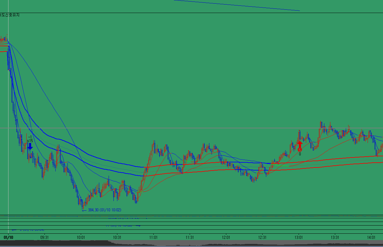 기본차트봉 완성시(다음봉시가수신) 기준으로 그때까지 완성되어 있는 참조데이타로 조건을 체크하게 되는데