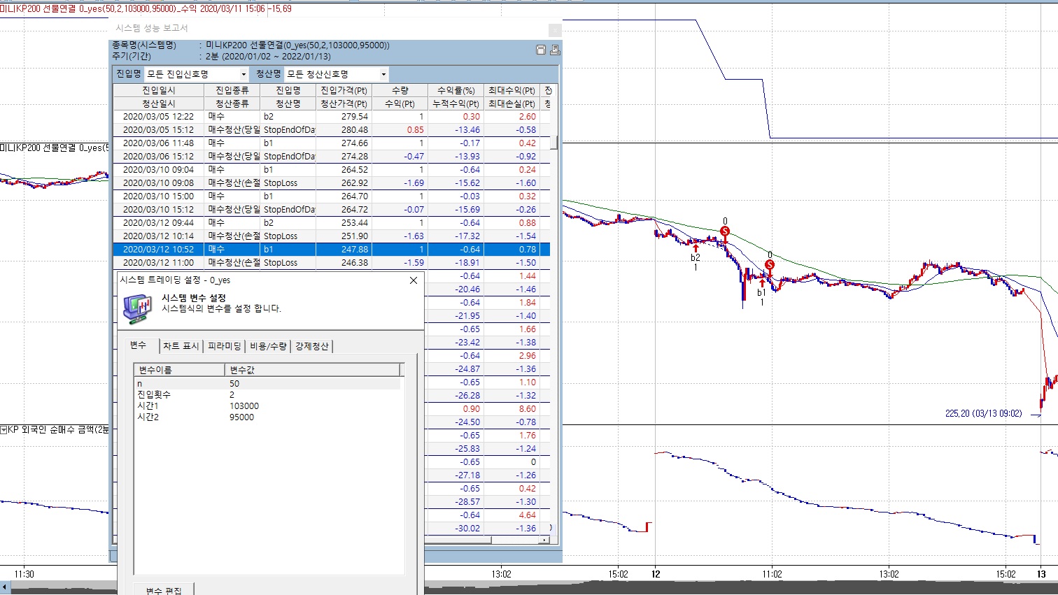 위 조건이 직전진입이 이름이 b2이고 손실인지를 판단하는 내용입니다.