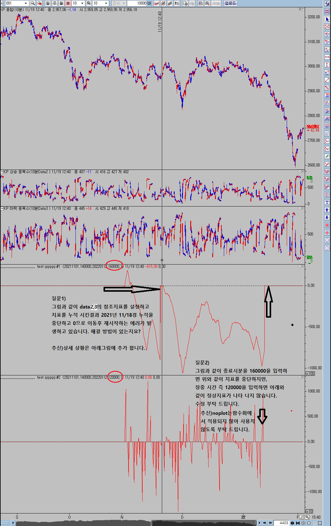 아래식은 종료년월일에 지정시간의 봉이 없없으면 그다음날 첫봉에 초기화가 됩니다.