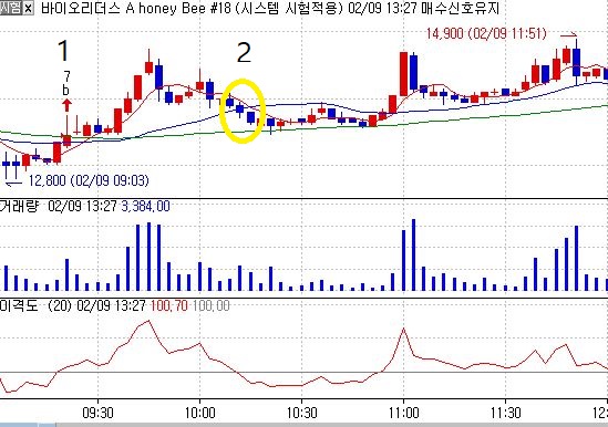 1. 일봉양봉 2. 20일 이평상승 3. 거래량 20거래량 평균 50% 이상 발생 시 매수