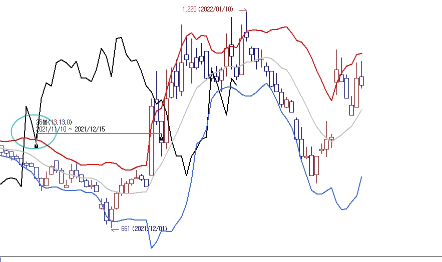 현재봉 종가가 25개봉전 볼밴상단을 돌파하는 상황이므로