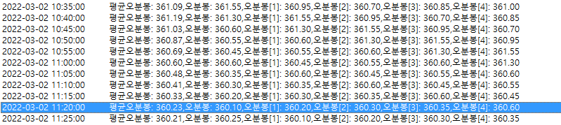 이평값이 1분차트에서 5분봉기준 이평을 만들었을때는 360.17
