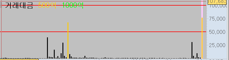 또한 500억이 넘으면 주황색, 1000억이 넘으면 형광색 등등 특정 거래대금 이상이 터지면 거래대금 봉 자체에 색깔을 주어 강조하고싶습니다