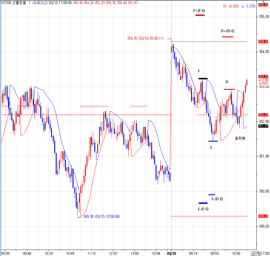D-1 파라볼릭 음전환 상태의 바닥(E) 표시