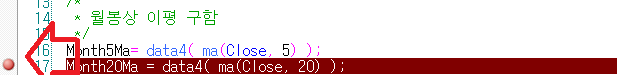 if CrossDown(Month5Ma[1], Month20Ma[1]) 로 표현해도,if CrossDown(Month5Ma[2], Month20Ma[2]) 로 표현해도 조건이 해결이 안되어