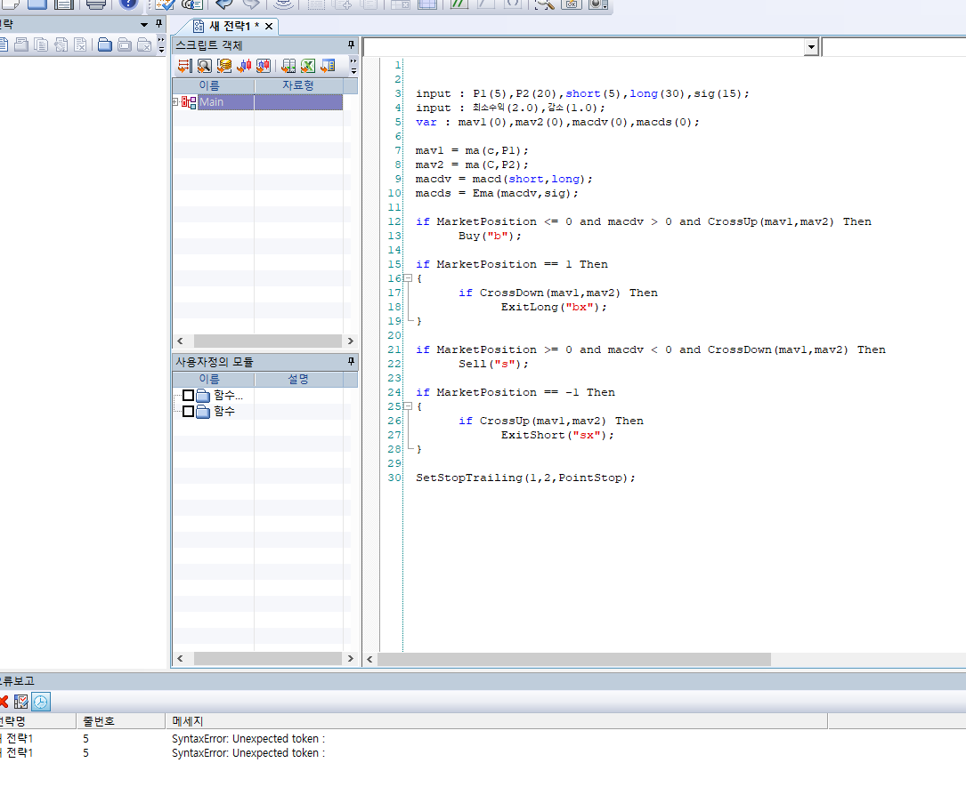 언어가 다르며 차트기반의 전략을 구현하는 편집기가 아닙니다.