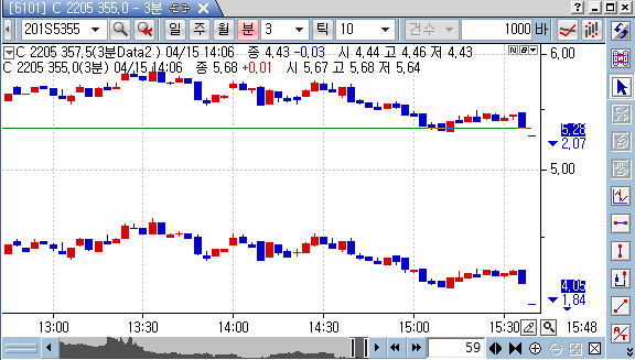 > 안녕하세요, 아래 그림처럼 선이 분봉에 따라 변하면서 그려진 값이 그대로 있는 것이 아닌,