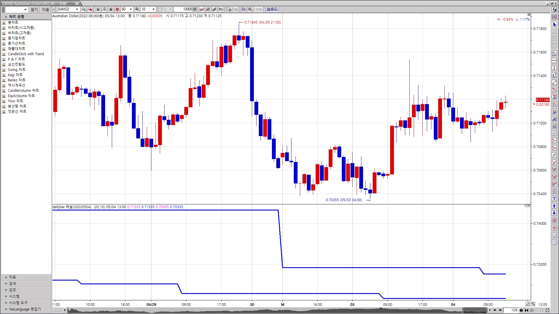 지표영역 왼쪽 상단에 첨부된 그림과 같이 각 라인의 값이 표시가 됩니다.