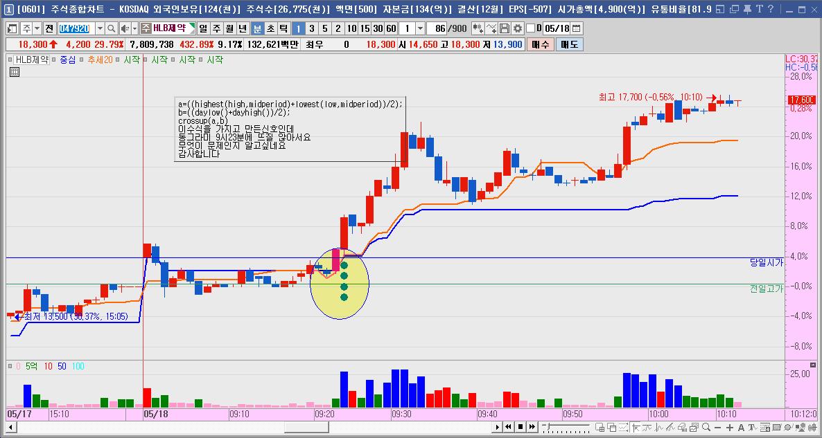 일목과 주가 중심값으로 조건식을 만들어서 사용해봣는데 수치가 전혀 다른게