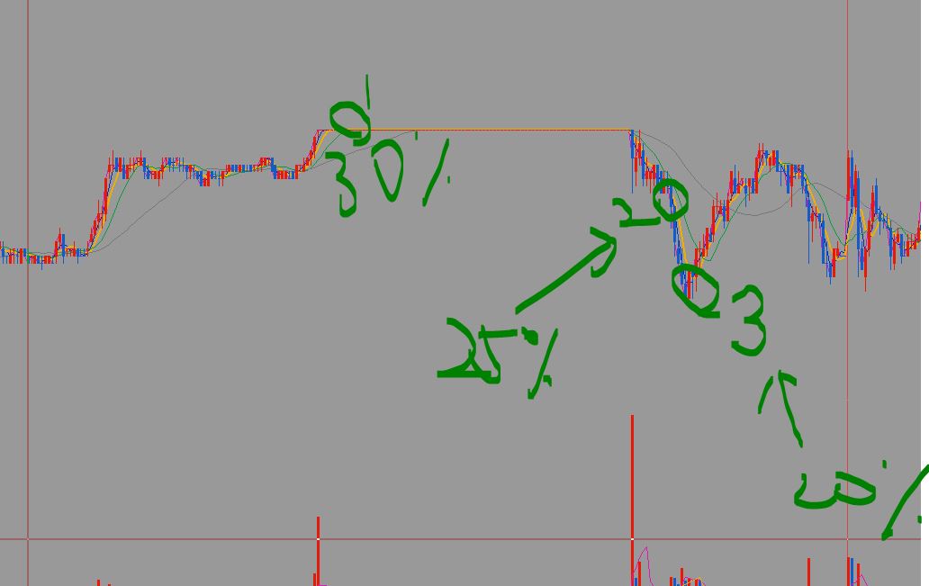 1차 30%때 매수, 2차 25% 매수 , 3차 20% 로 분할매수가 되었고,