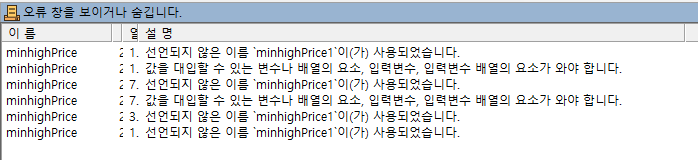 아래 사용자 함수는 첨부와 같은 에러 내용이 나오고 안됩니다..