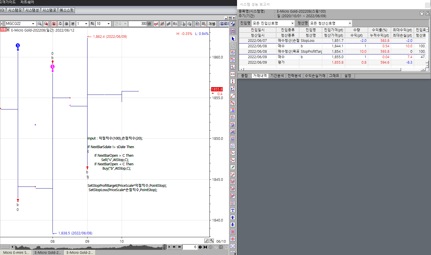 전일 buy 진입후 익절 +100틱이 나오질 않아서 당일시가이후 신호없이 연장선상에 있는