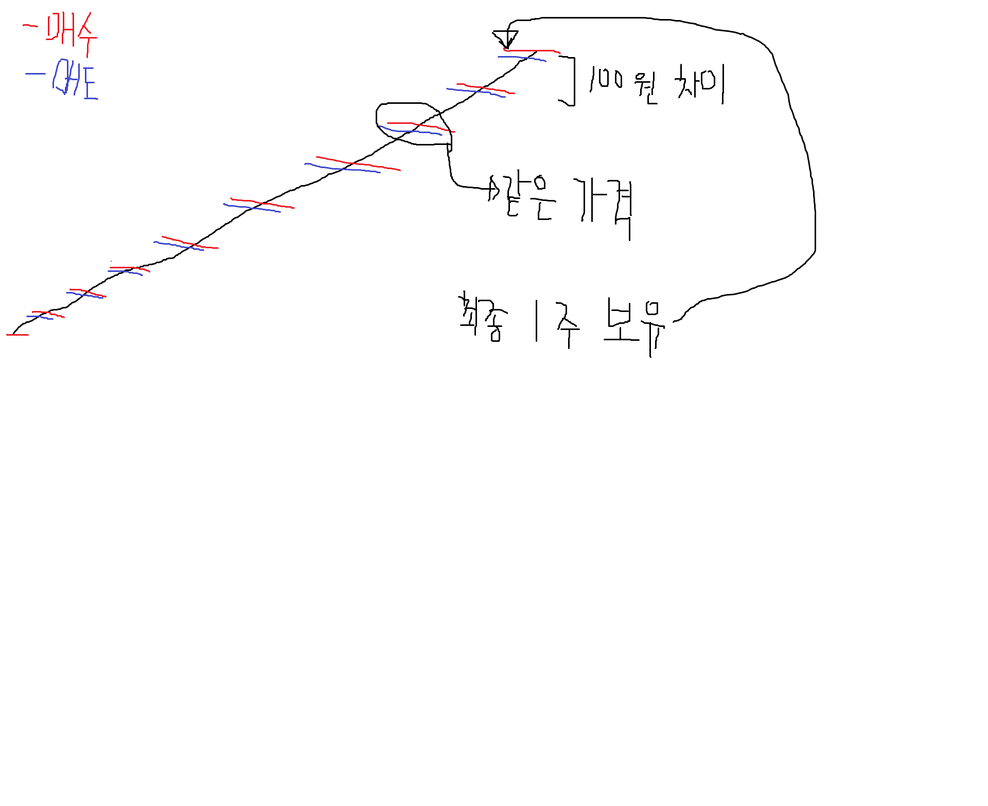 만약 최종 진입가(9700)보다 100원 상승 시 1주 매도