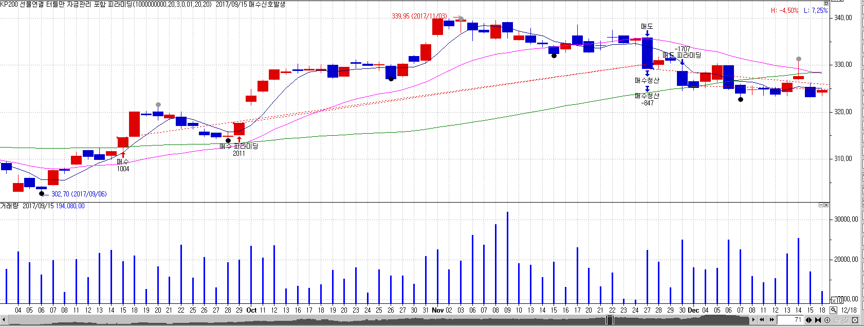 > 안녕하세요! 예스트레이더 참 잘 이용하고 있습니다. 간단한 터틀 트레이딩에 자금관리와 피라미딩을 적용했는데, 피라미딩에서 문제가 있습니다. 매수,매도 최초진입 바로 다음 봉에서 피라미딩 조건이 발생하는 경우에는 피라미딩이 적용되지 않는 것 같습니다. 진입 바로 다음봉이 아닌 상황에서는 피라미딩이 올바르게 적용되는데 말이죠.. 수식은 아래와 같습니다.