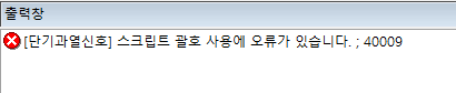 "스크립트 괄호 사용에 오류가 있습니다.;40009"