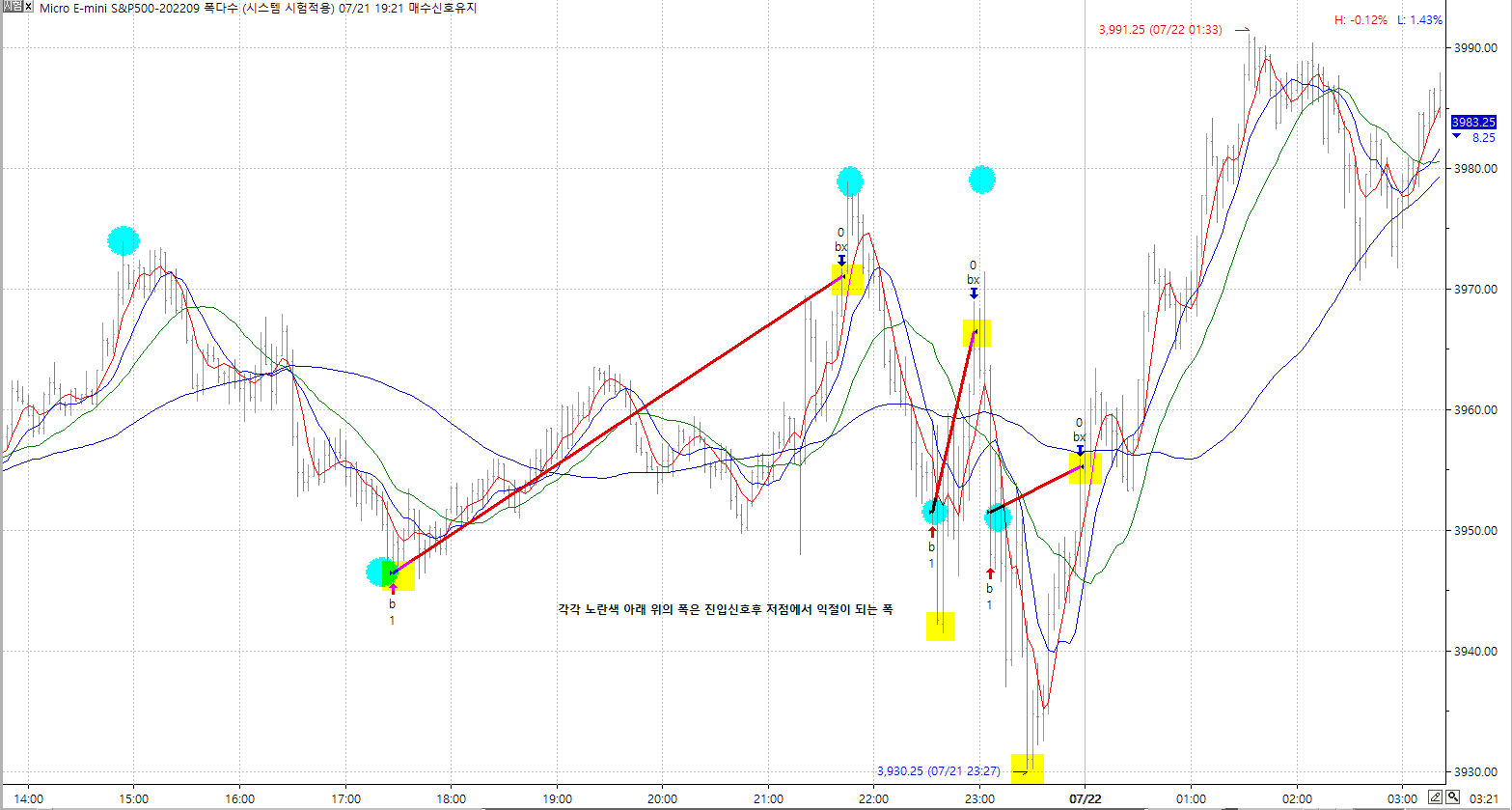 진입신호후 저점대비 익절이 반복되는 수식어입니다.
