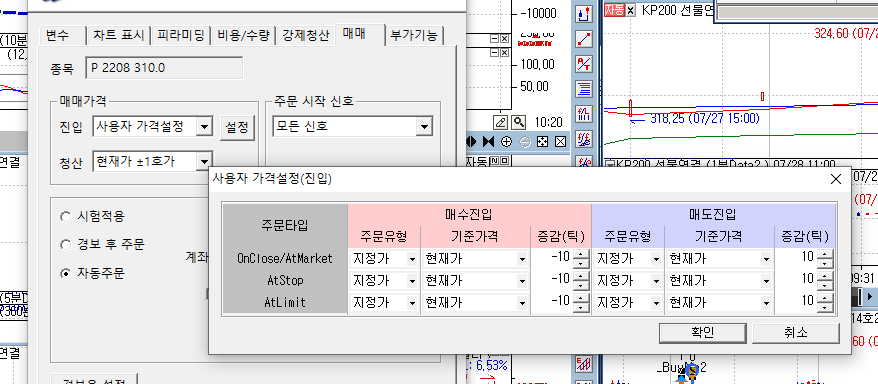 매도진입은 모두 현재가+10틱으로 주문이 집행됩니다.