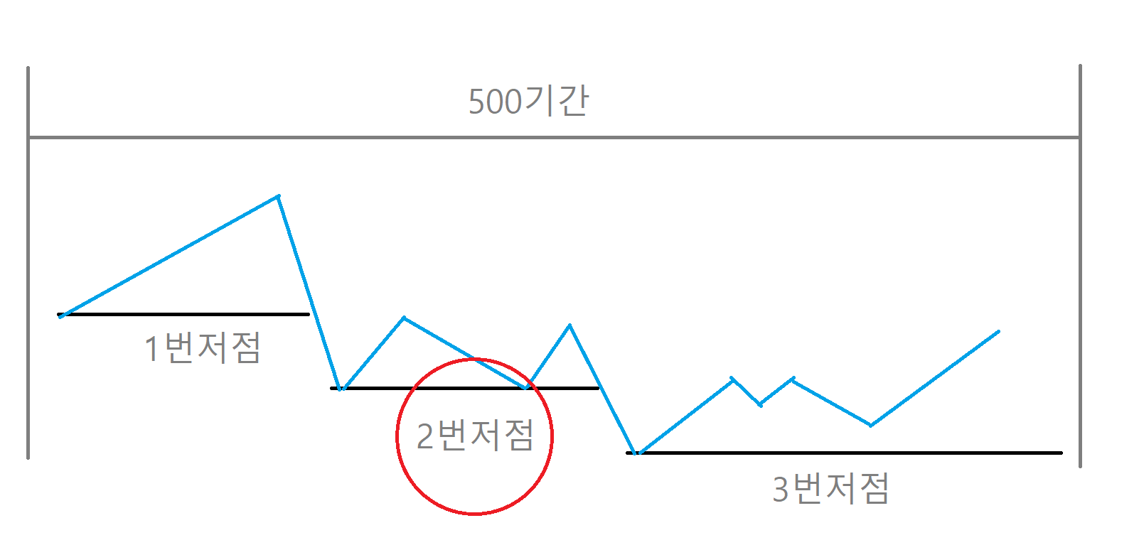 예를 들어 500 기간중 60 기간마다 저점이 갱신될 경우 해당값을 저장하고