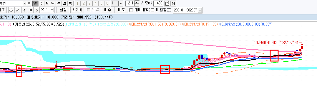 주가가 기준선을 돌파하거나,같을때 차트에 화살표로 표시가 되었으면 합니다.