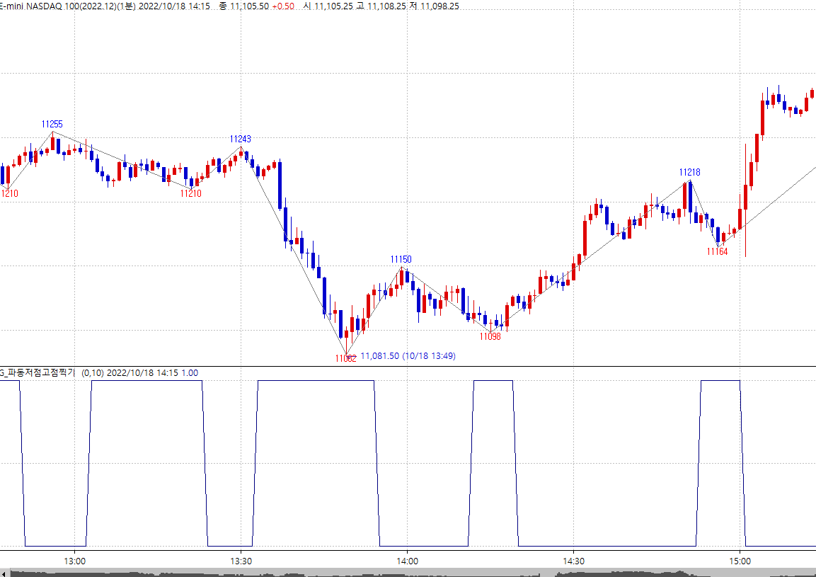 사용 목적은 파동의 고점과 저점 봉의 데이터 출력하고자 합니다.