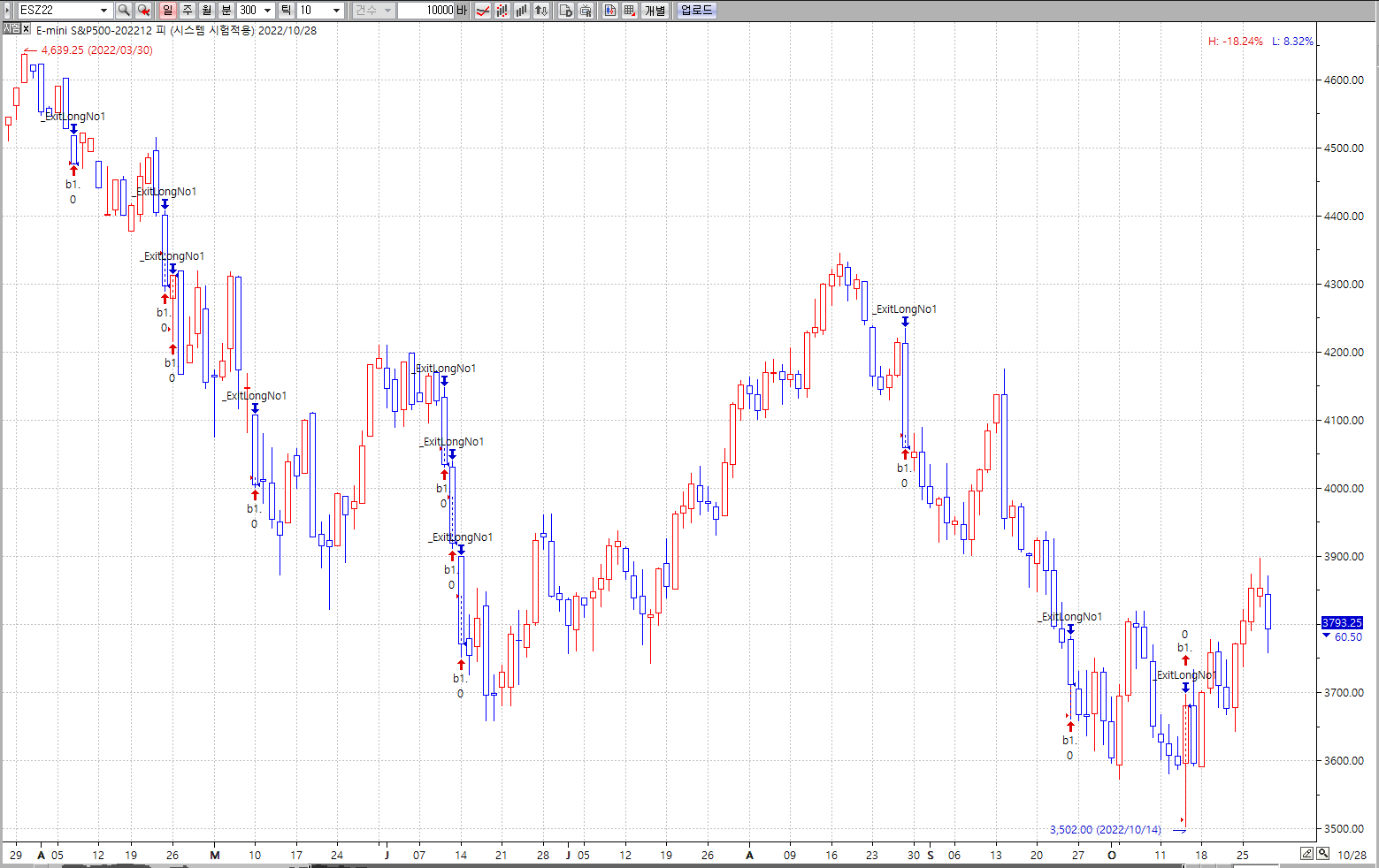 예를들면 8일 기간값에서 진입신호후 청산은 10일중에 청산값에 도달하면