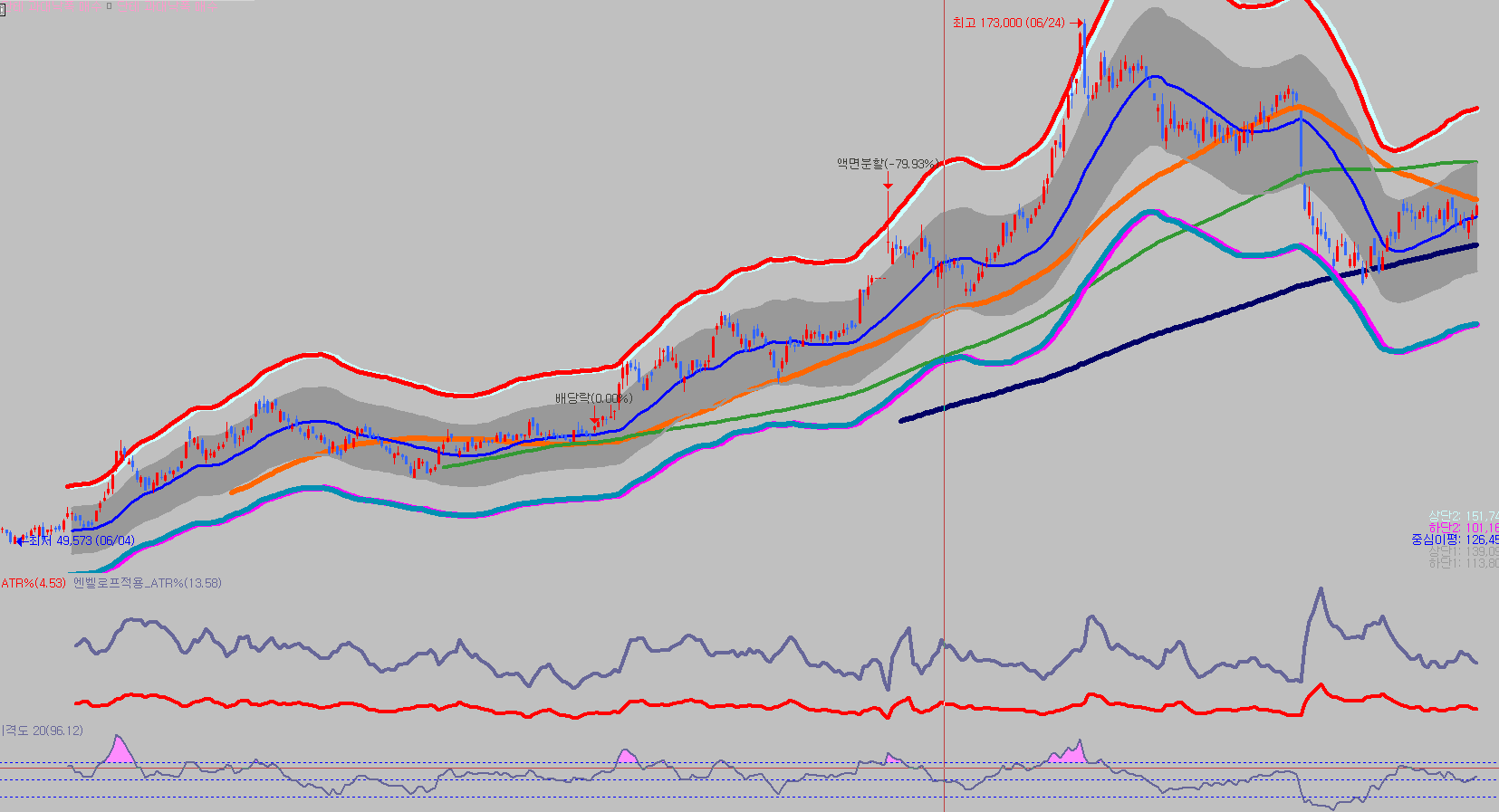 ma(max(max(H-L,abs(C[1]-H)),abs(C[1]-L)),장기)[1]/C[1]*100)/2)*일정배수;