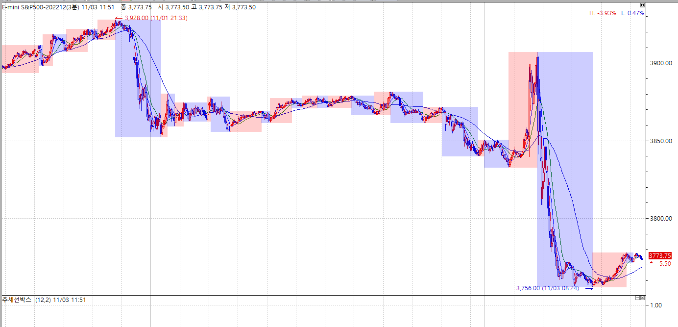 위 수식어와 그래프는 좀전 고성님이 올리신 추세선지표 입니다.