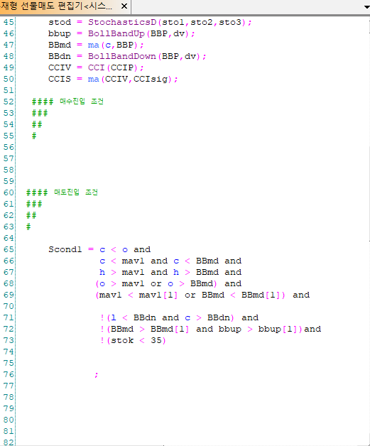 시스템식에서 지정한 각 이평과 볼밴의 기간 및 배수값과