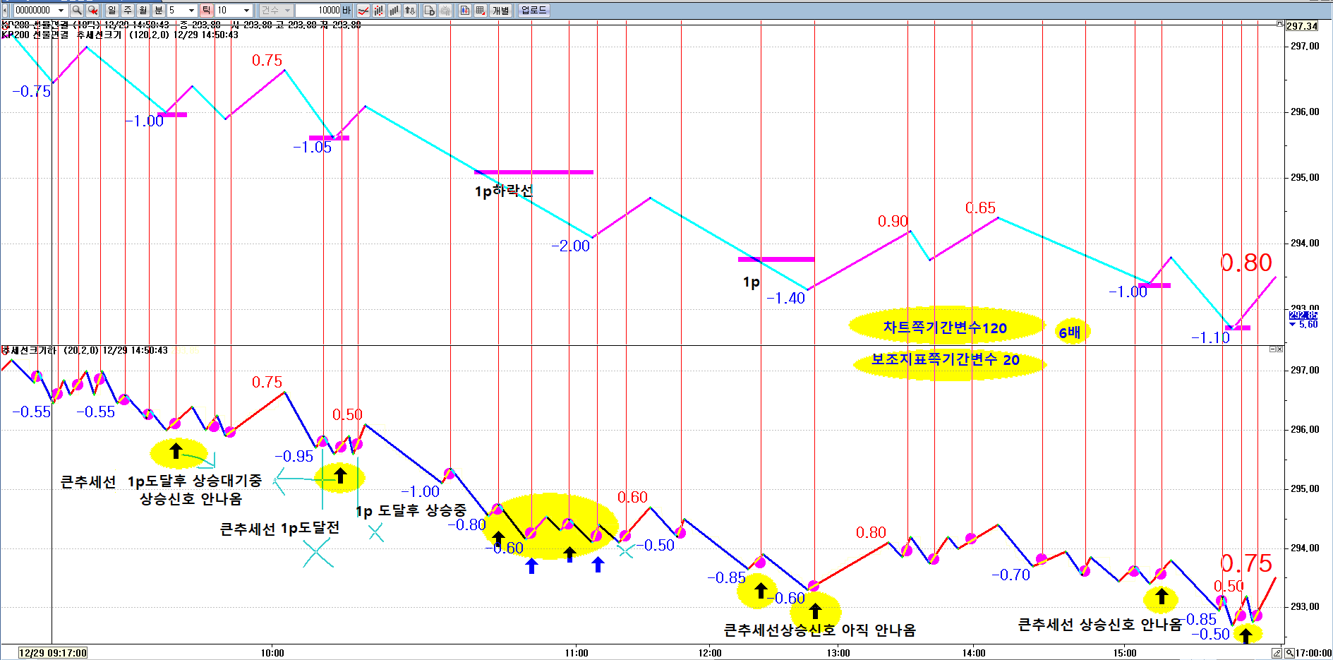 2.시스템:단기 추세선의 추가 동그라미에 매수, 음전환시 매도. 감사합니다.