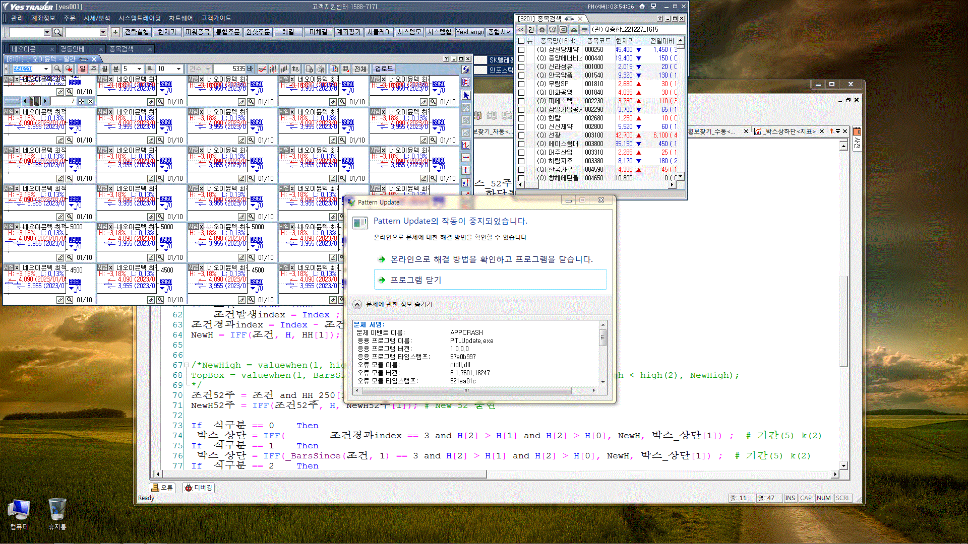 > 목포댁 님이 쓴 글입니다. > 제목 : Pattern Up*date의 작동이 중지되었습니다. > 통화 후 컴을 보니 바로 메시지 나오네요