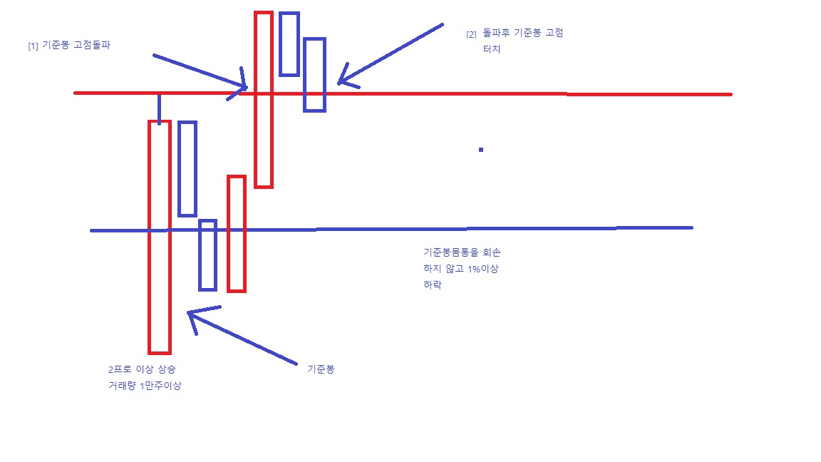 20봉이내에 2프로상승 1만주이상 양봉(기준봉) 이 있고