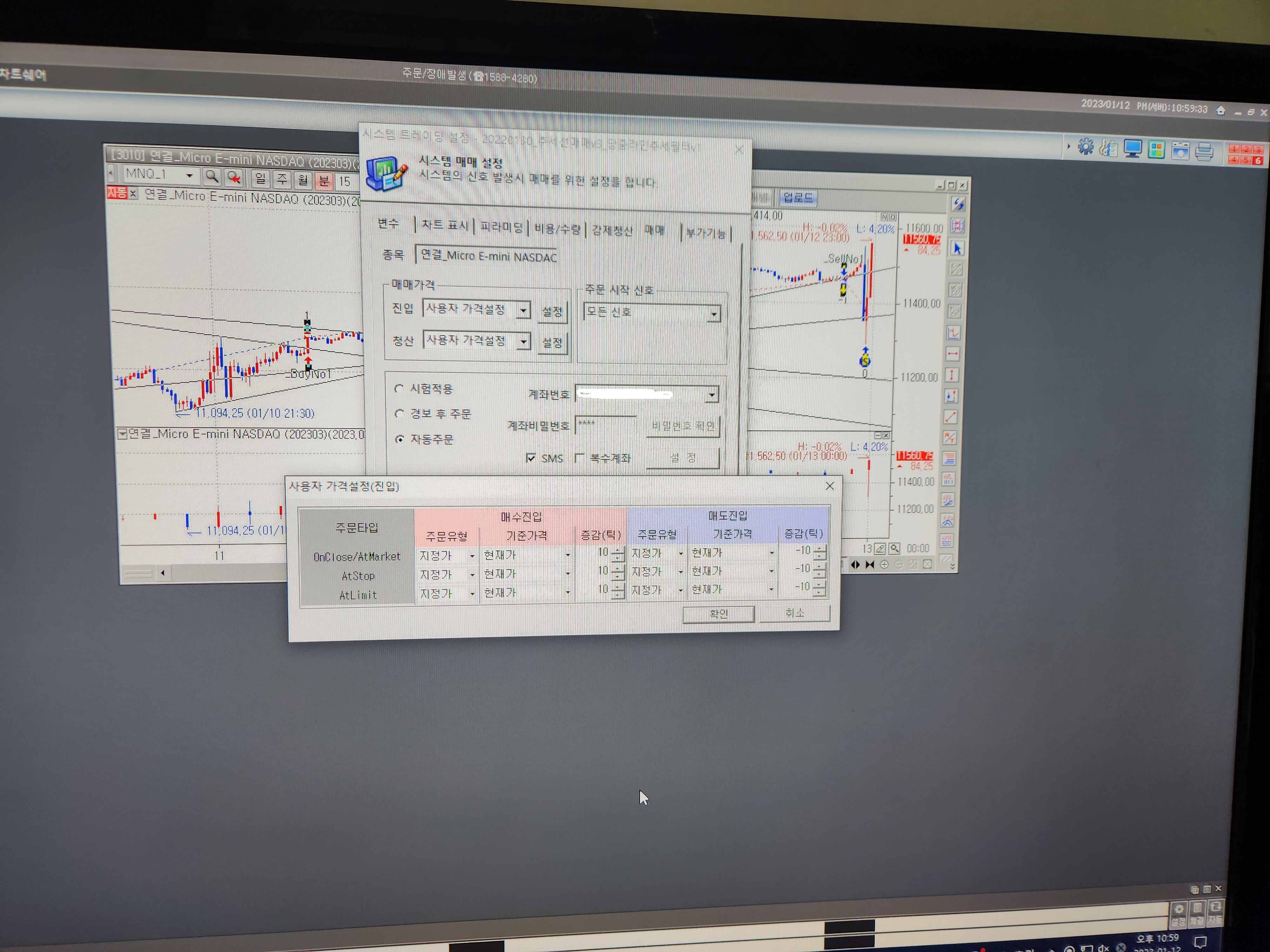 > nh선물 예스트레이더로 해외선물 미국나스닥 마이크로 자동매매를 하고 있습니다.