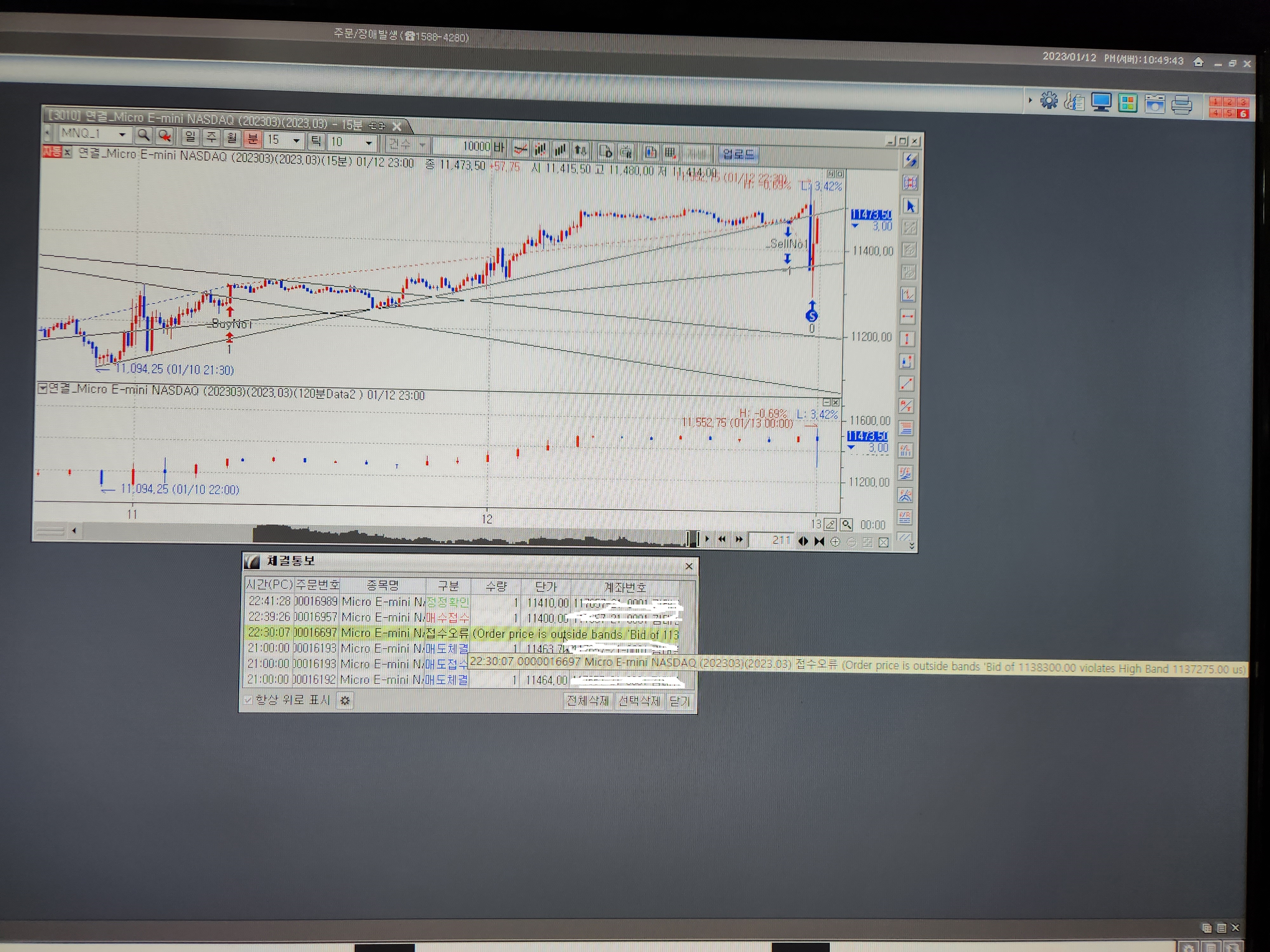nh선물 예스트레이더로 해외선물 미국나스닥 마이크로 자동매매를 하고 있습니다.