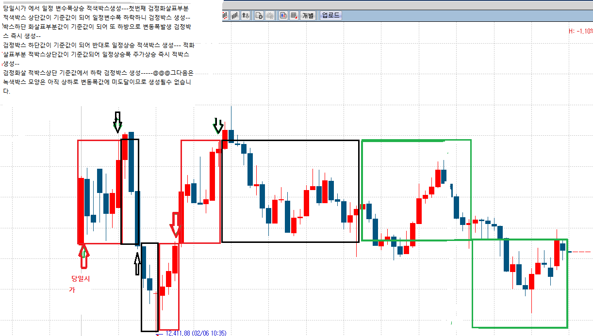 당일시가 출발 값도달시 박스생성 그다음은 박스값이 기준값되어 변수값도달시 다음 박스 생성. 생성된 박스값이 기준값되어 변수값도달시 또 박스생성