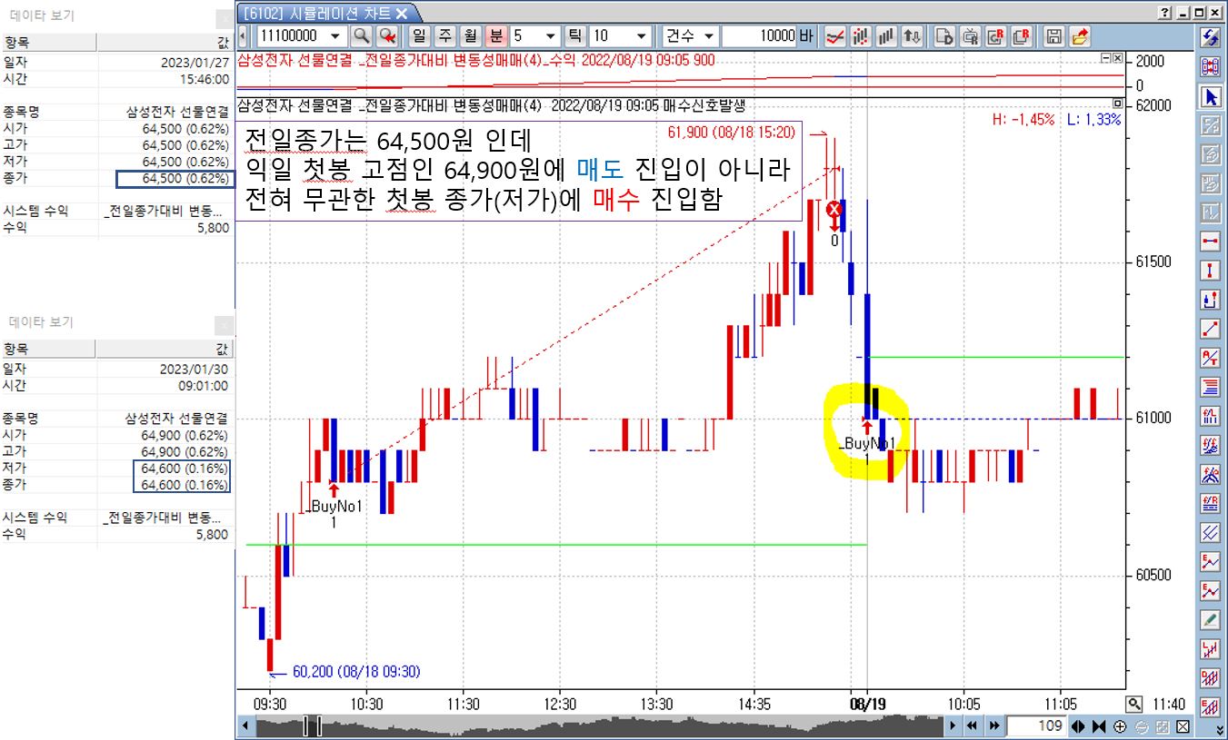 > 제목 : 전일종가 대비 상승, 하락에 반대로 진입(최적화 기능을 사용) - 진입 재질문