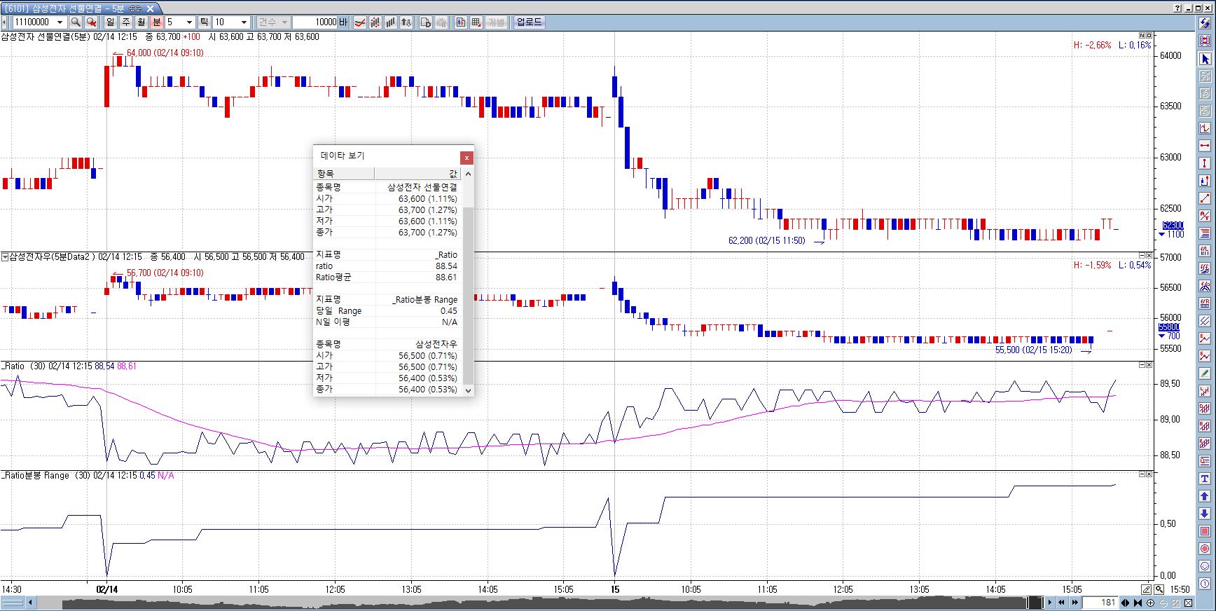 > 제목 : Data1과 Data2의 분봉 데이터로 만든 지표의 Range 산출 방식