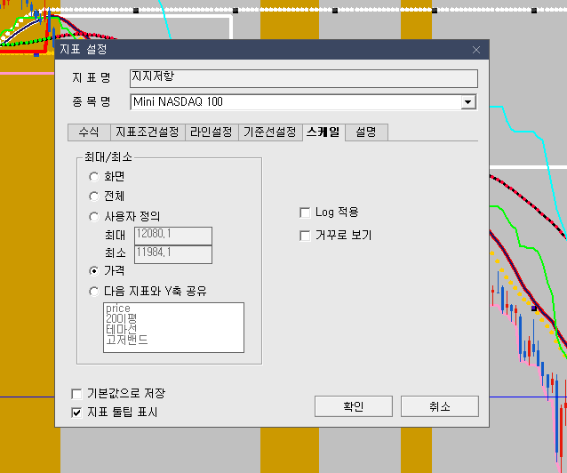 지표속성 Y축표시에서 가격으로 지정하고