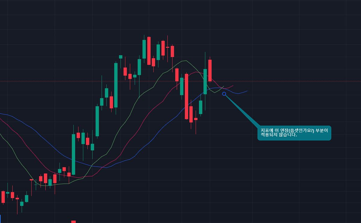플로팅상태로 표시되므로 봉차트와 가격이 위치가 다르게 됩니다.