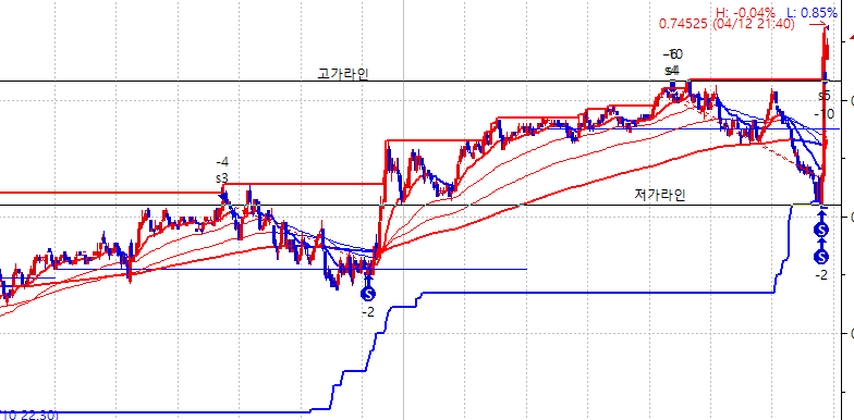 위와 같이 코딩하면 고가라인과 저가라인이 변할때 마다