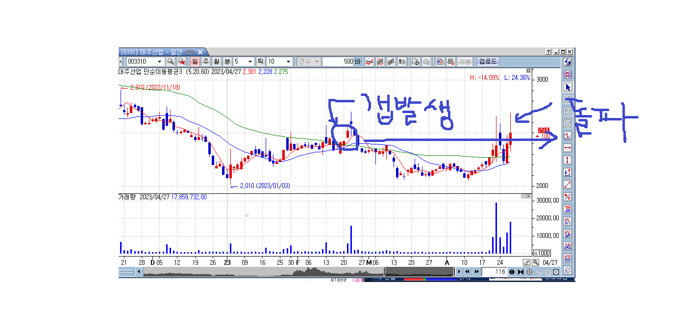 2023 2월 21일 상승갭 발생한 이후