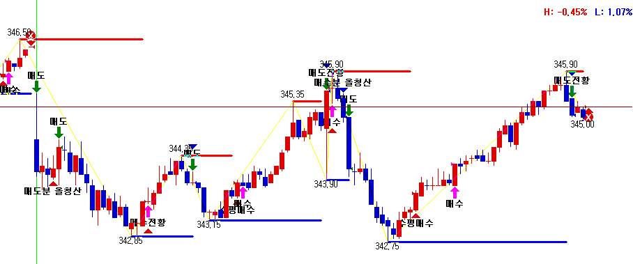 //직전 고점에서 현재 저점까지 연결선 출력